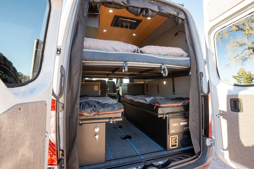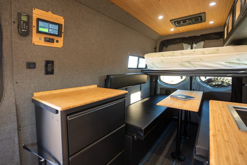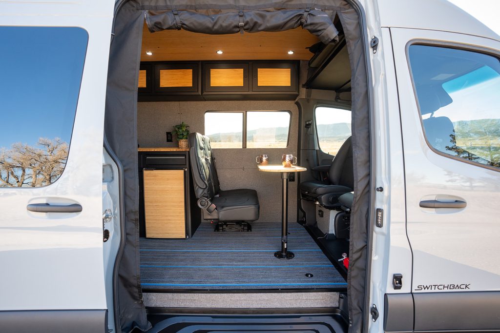 The Switchback model offers everything you need for a comfortable experience on the road. When paired with a Mercedes Sprinter 170″ chassis, this extra length opens up your living area and is a great option for families.