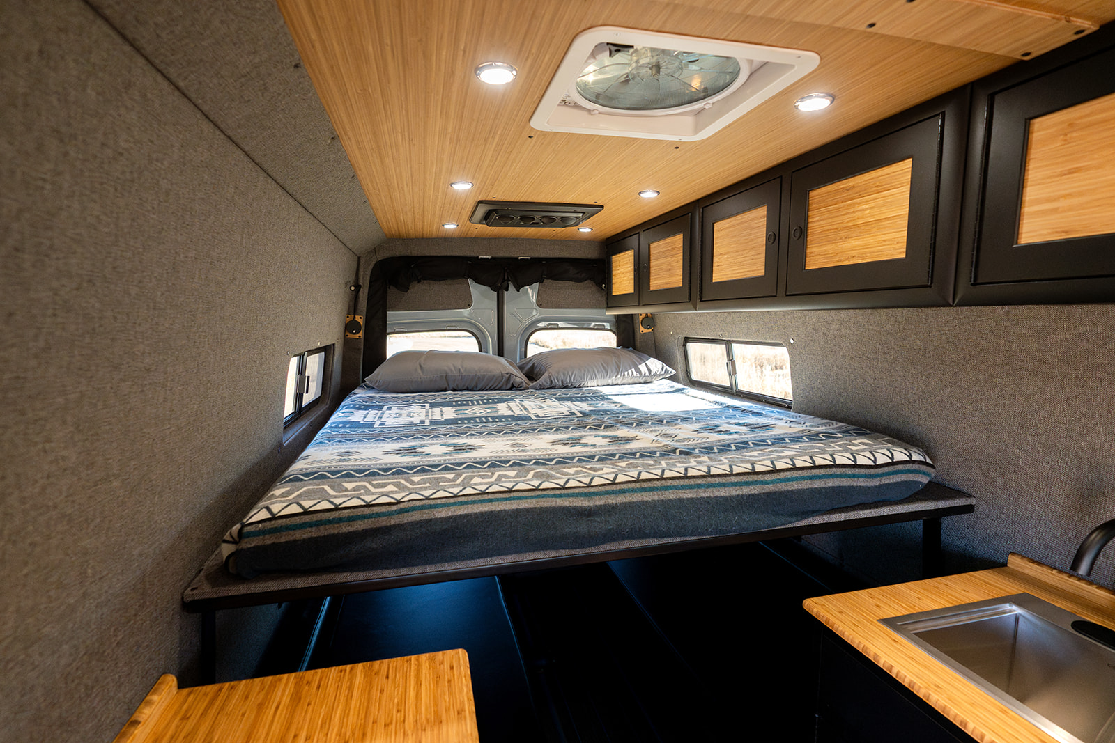 The Switchback model offers everything you need for a comfortable experience on the road. When paired with a Mercedes Sprinter 170″ chassis, this extra length opens up your living area and is a great option for families.